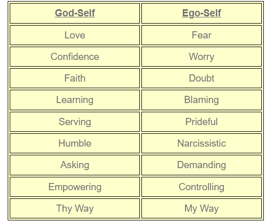 Studying the attributes to these two very different selves will be helpful for clarity's sake.